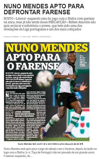 According to a recent report covered by Correio da Manha (press image provided below), Liverpool remain interested in Mendes and could secure his signing for £40.7million in the winter transfer window as the clause is too low to scare off the Reds.