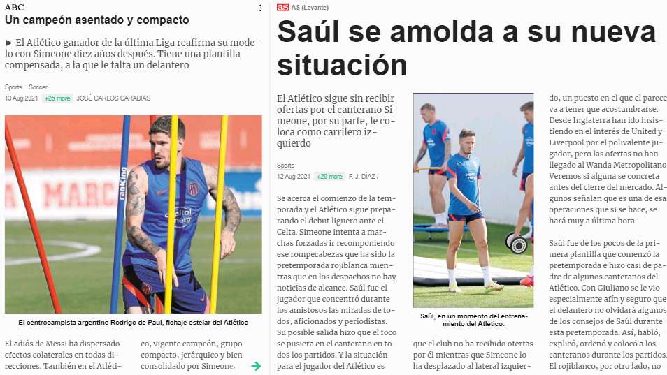 Two Spanish outlets in the form of ABC and AS (press image provided below) have covered reports on the future of Saul, who might end up leaving Atletico Madrid in the summer transfer window.