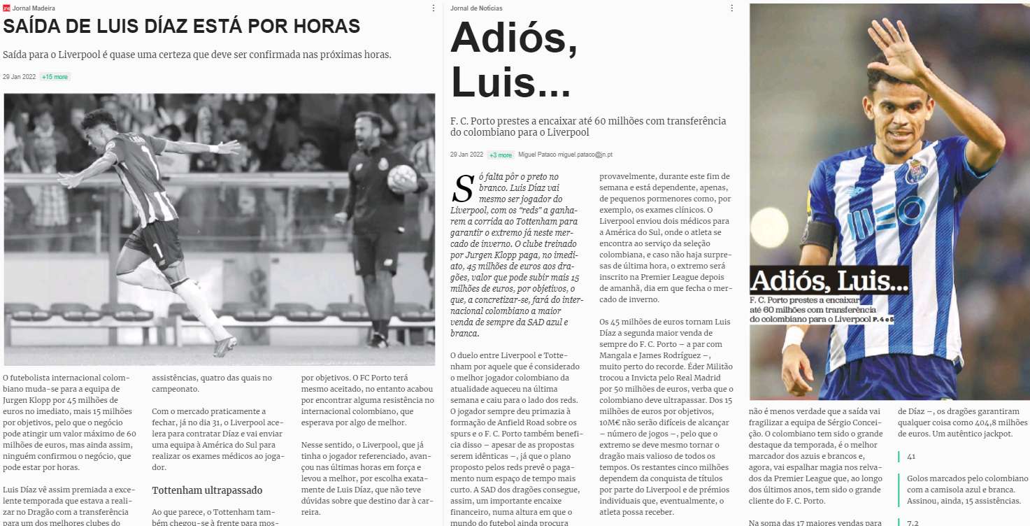 JM claim that Diaz’s departure for Liverpool is almost a certainty and the confirmation should be made in the next few hours. Having already reached agreements with Porto and the player, the Merseysiders are working to get the medical done soon so that the deal can be officially completed.