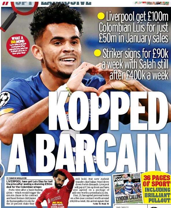 However, according to an exclusive story covered by Simon Mullock, published in today’s edition of The Mirror (press image provided below), Liverpool have agreed a five-year deal with the Colombian that will make him earn £90,000 a week (£4.68million a season).