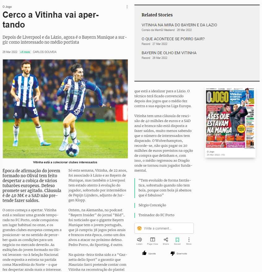 The well-known Portuguese media outlet have stated that now, the Dragons do not have to sell players to balance the books and therefore, they will not offer any discounts for the departure of Vitinha.