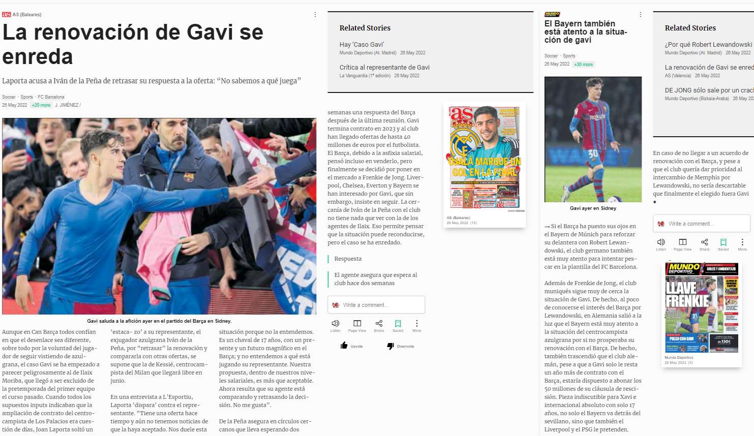 As per stories covered by Mundo Deportivo and AS today (news image provided below), Barcelona have decided to sell Frenkie de Jong to raise funds but if Gavi does not sign an extension, then his departure cannot be ruled out.