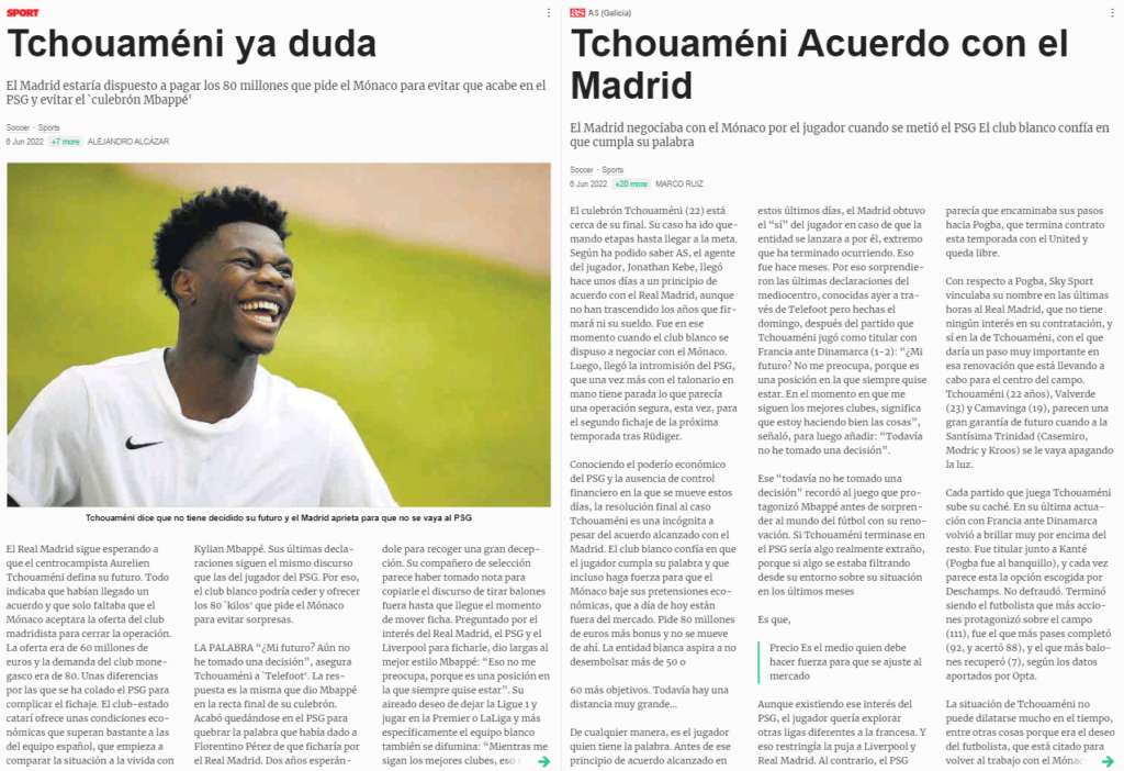 AS report that the Ligue 1 side are demanding a fee of 80 million euros plus bonuses from the sale of Tchouameni. On the other hand, the Los Blancos are pushing to get a deal done for 50-60 million euros plus add-ons.
