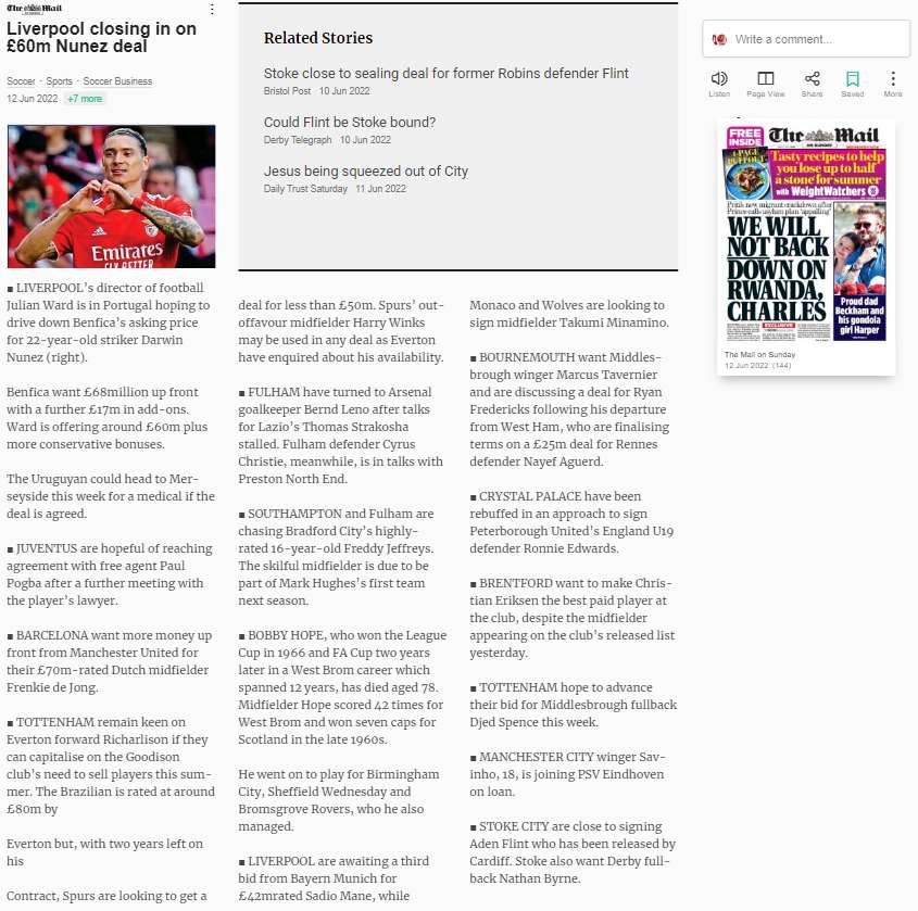 According to a report covered by The Mail today (press image provided below), the Reds are closing in on striking a deal to bring the Uruguayan striker to Anfield.