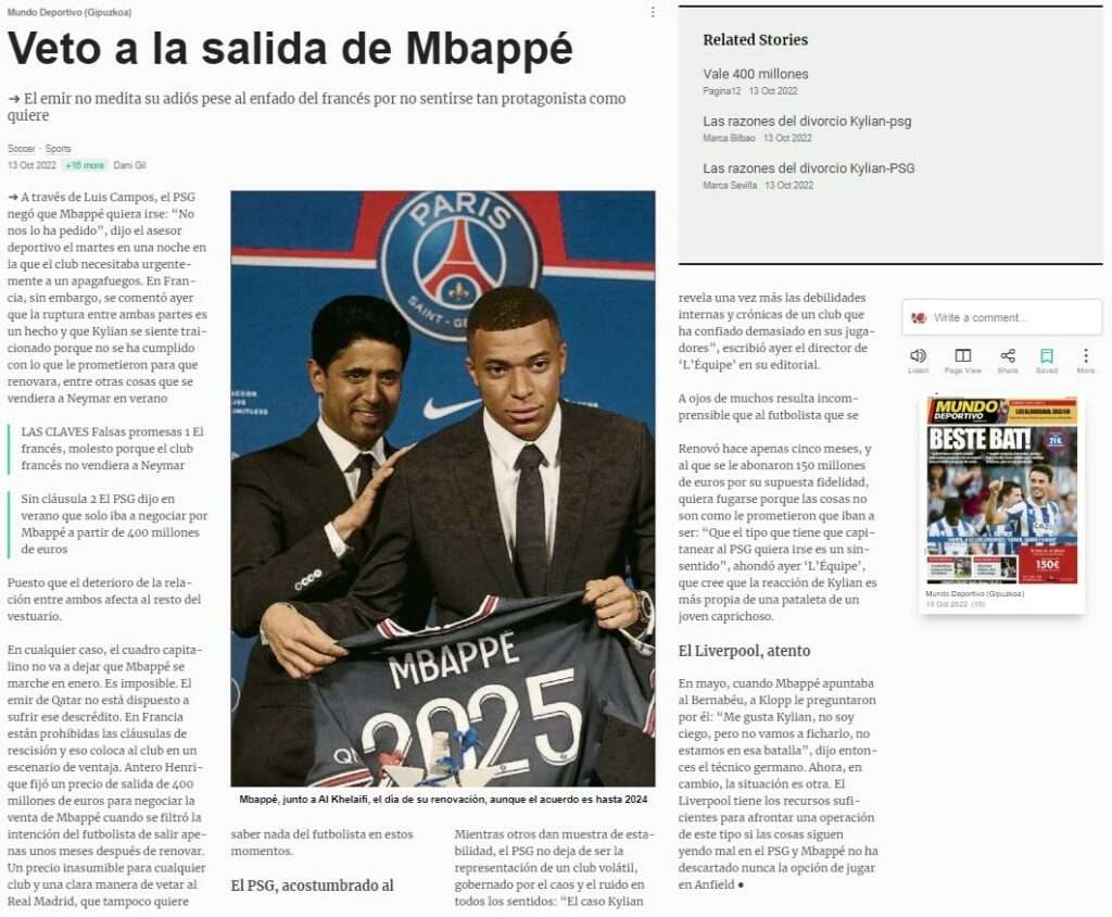 Now, the “situation is different”. Liverpool have ample funds to complete the signing of Mbappe if things continue to go wrong at PSG, moreover, it is reported that the attacker has never ruled out a move to Anfield.