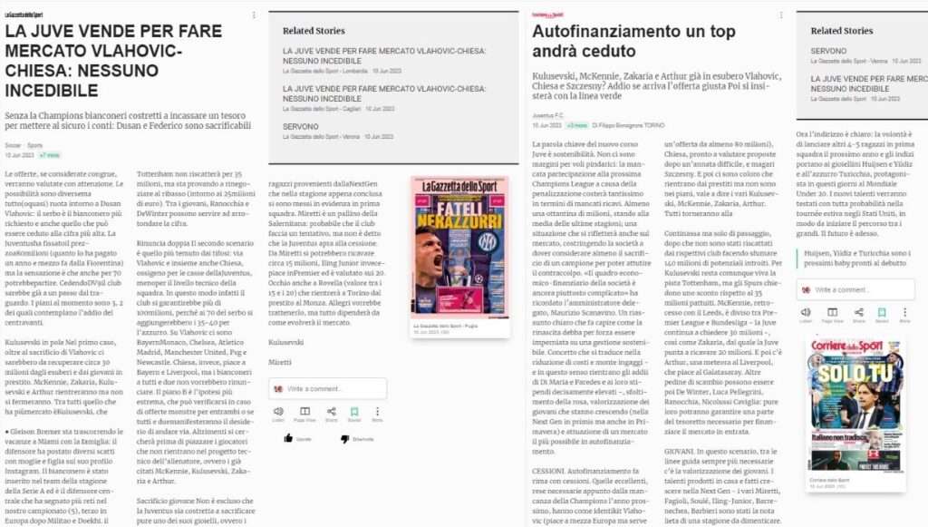 The Rome based news source claim Chiesa is ready to evaluate offers to exit the Turin based club in the summer.