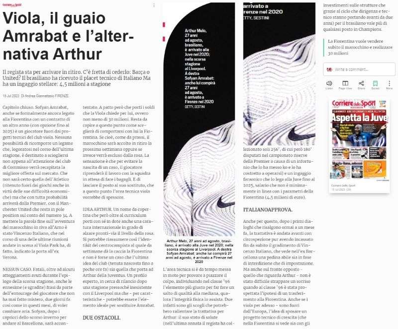 Further, CorSport reveal that to replace their first choice defensive midfielder, Fiorentina are eying the signing of Arthur from the Bianconeri.