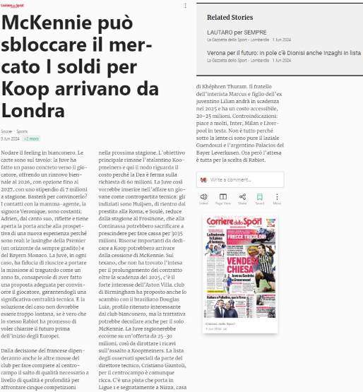 This morning, Corriere dello Sport (news image provided below) have provided an update on the future of the Ligue 1 star.