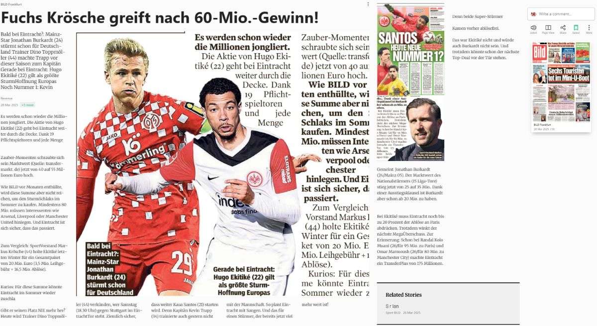 Now, as per Bild [image attached at the end], Liverpool have been told that a fee of around £66.9million (80 million euros) will help them sign talented Eintracht Frankfurt striker, Hugo Ekitike.