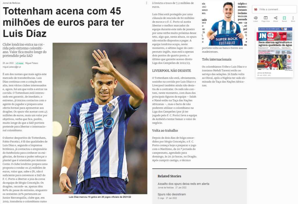 If reports in the Portuguese media are anything to go by then Liverpool are once again linked with Colombian international, Luis Diaz, who may end up leaving Porto this month.