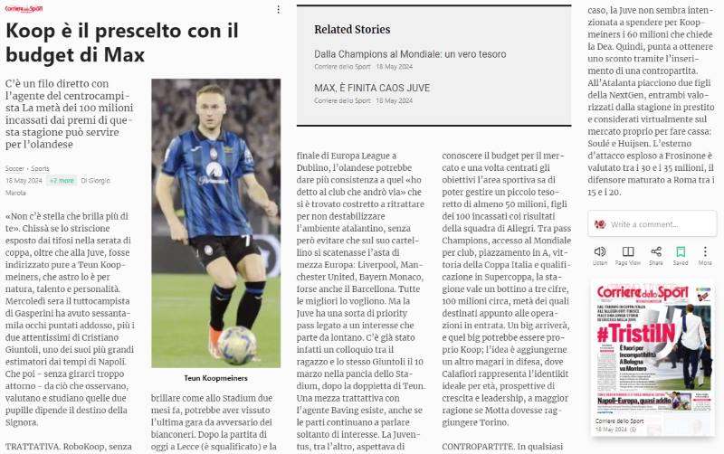 As per today’s version of Corriere dello Sport (news image provided below), the Atalanta attacking midfielder is high in demand in the transfer market.