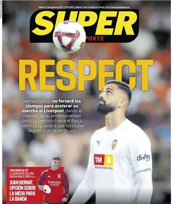 A few days ago, Liverpool moved in with an offer worth 30 million euros but Valencia want a fee of 40 million euros (inclusive of add-ons) to let Mamardashvili leave.